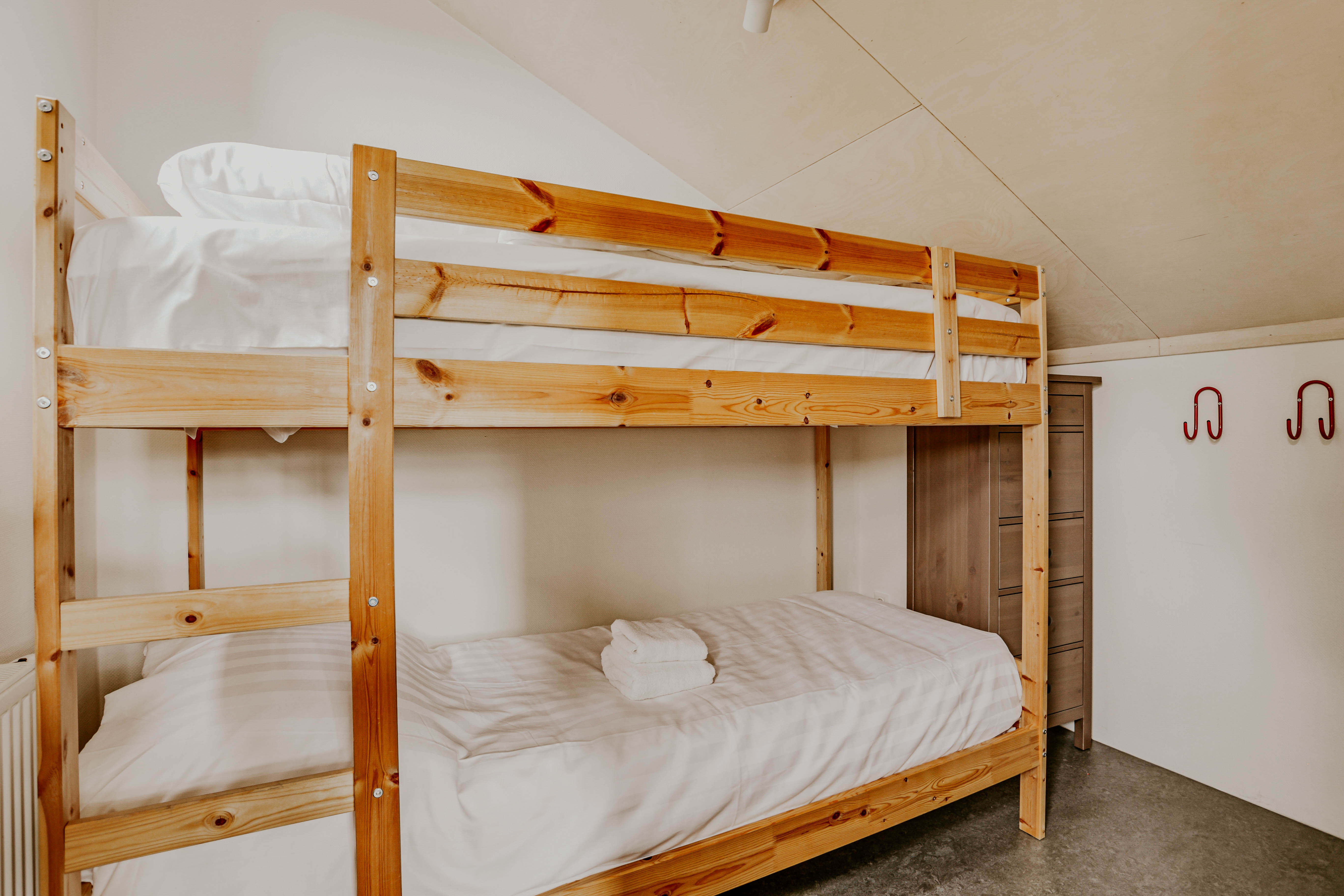 Es gibt drei Schlafzimmer in dieser Unterkunft, eines im Erdgeschoss und zwei im ersten Stock. Von den drei Schlafzimmern sind zwei mit Boxspringbetten ausgestattet. Das andere Schlafzimmer ist mit einem Etagenbett ausgestattet. Es gibt auch einen Hochstuhl.